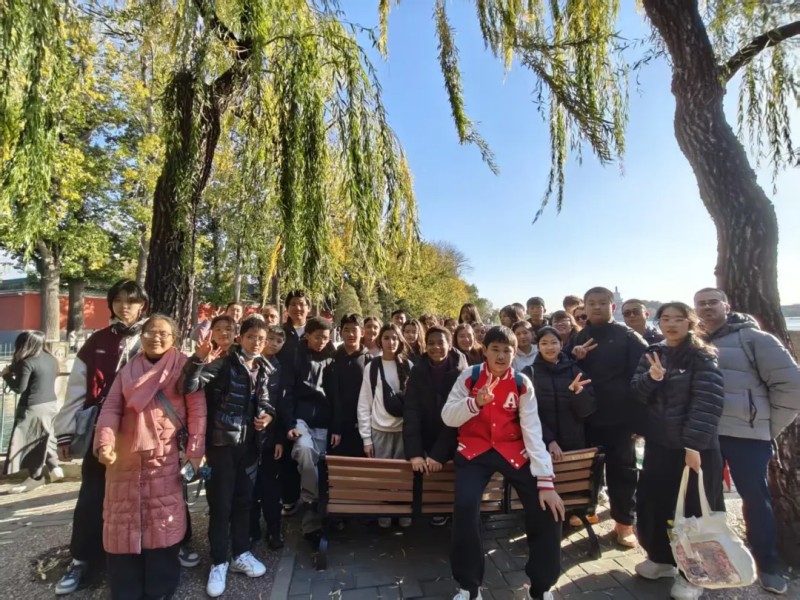 漫步至景山与北海,我校师生和法国师生在秋色中,感受皇家园林的独特魅力;在许志杰老师的指导下,体验中国太极;下午,一起去参观雍和宫,领略历史文化底蕴;在赵越老师的美术课上,法国学生用毛笔书写“有福”“福气”的新年祝福;下午,两校师生共同去参观天坛,感悟古代建筑精髓与文化价值;随后走访红桥市场,体验本地商业文化;第四天开展了故宫之行,直观感受中华文明的博大精深,设身体会和而不同的文化观念。