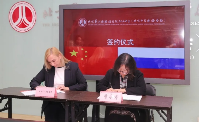 本次交流之际,俄罗斯代表团携深化教育合作的诚挚愿景到访我校,与二外附中(北京中学外语分校)正式缔结友好姊妹校关系,并签署合作协议。