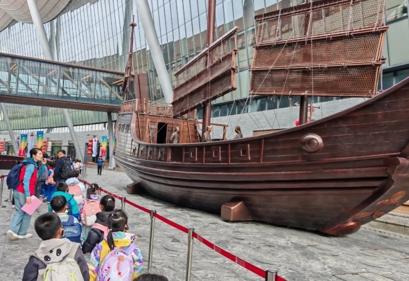 清晨,孩子们满怀期待地走进了运河博物馆。在馆内,大型沉浸式3D动画《不止运河》以其震撼的视觉效果,将京杭大运河的历史脉络、水利智慧与沿岸风情生动再现。