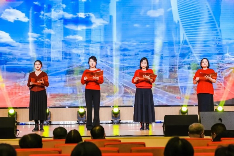 北京第二外国语学院北京地区联盟校大联欢的精彩好戏轮番上演,二外附小的跳绳《同心共 “跃”》活力四射、动感十足,二外附小定福分校的中国鼓表演《龙腾虎跃》《滚核桃》鼓点铿锵、气势如虹及啦啦操《青春跃动》,让满场都洋溢着童真与朝气;我校学子带来的合唱《鼓楼》惊艳亮相,熟悉的旋律瞬间点燃全场热情,青春的气息扑面而来,尽显新时代青年的昂扬风采;陈会娟、唐琼、刘聪聪、张欣四位老师登台,深情朗诵《躬耕教坛 逐光而行》,字字句句饱含对教育事业的赤诚、对学校发展的期许,以及对莘莘学子的深切挚爱,深深打动了在场的每一位观众。