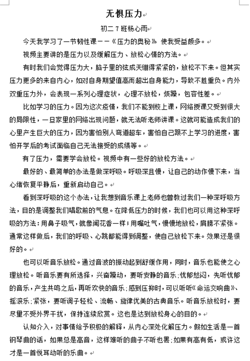 初二年级韧性征文——我的“云端”心灵故事