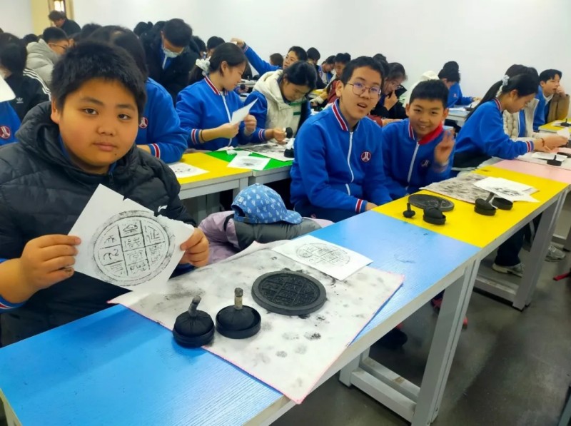 “以前背‘谁知盘中餐,粒粒皆辛苦’只觉得是句古诗,今天亲手犁完地,手掌被犁柄硌出红印,才真懂每粒粮食都浸着汗水!”初一年级的李同学擦着额头的汗珠,手里攥着刚从田间拔起的青菜,翠绿的菜叶上还沾着泥土,他的眼睛里满是“解锁新技能”的兴奋与对粮食的敬畏。初二年级的张同学则在手工区“泡”了许久,磨豆浆时反复调整力度才让浆液细腻,拓印时屏息凝神才让图案完整,她捧着自己的“双份成果”感慨:“原来‘慢工出细活’不是空话!磨豆浆要讲节奏,拓印要拼耐心,这些比做题还考验专注力,做完特别有成就感。”