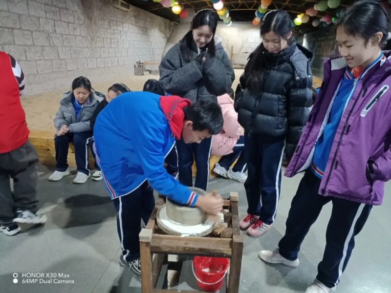 田间地头里,犁地时紧握犁柄的较劲、插秧时小心翼翼的专注,让农耕文化不再是课本上的文字;手工工坊中,陶瓷作画时笔尖的流转、拓印时油墨的晕染,让创造力在指尖绽放;生活体验区里,石磨转动间豆香的弥漫,让“自给自足”有了真切的味道;团队拓展场上,合力搭建高塔时的分工协作,让集体的力量悄然凝聚。每一项体验,都让“课本外的课堂”变得可触可感。